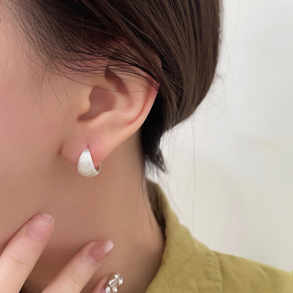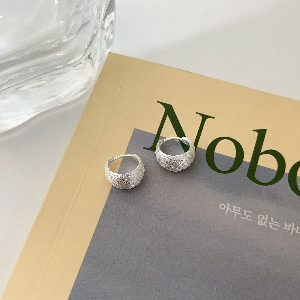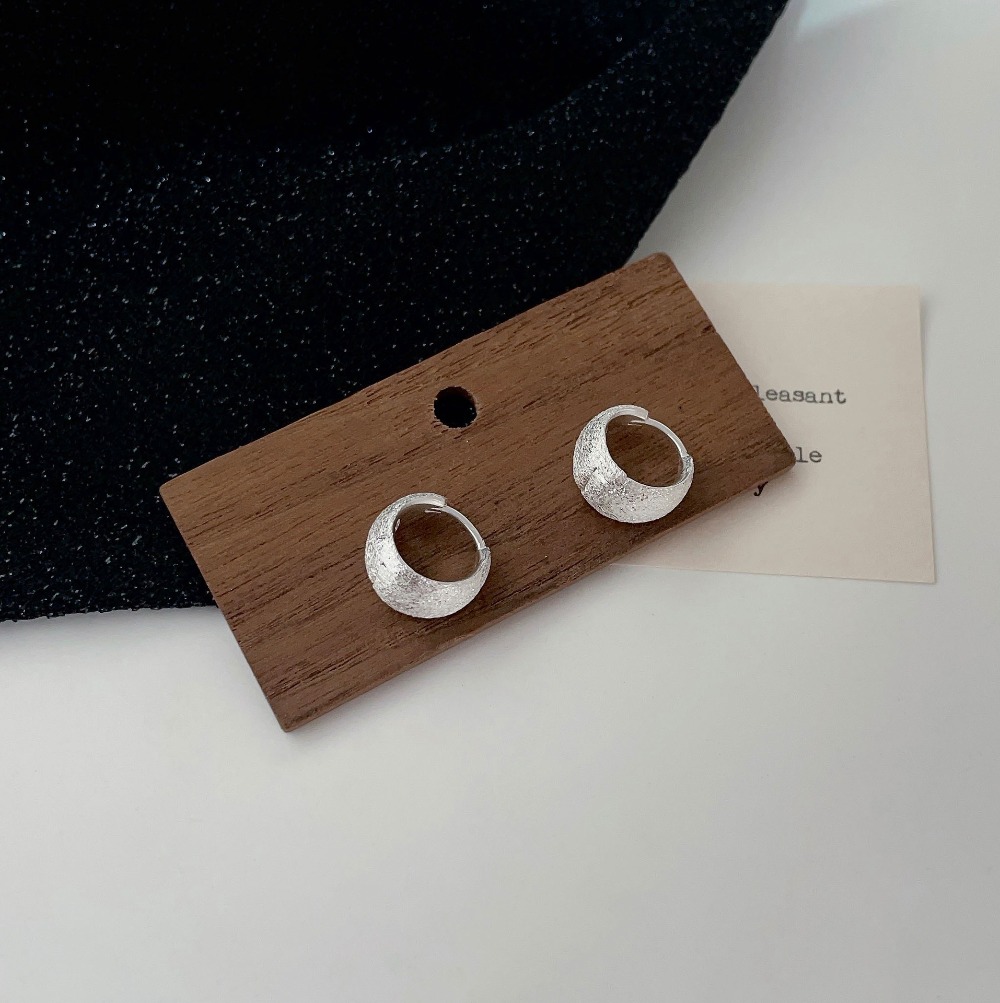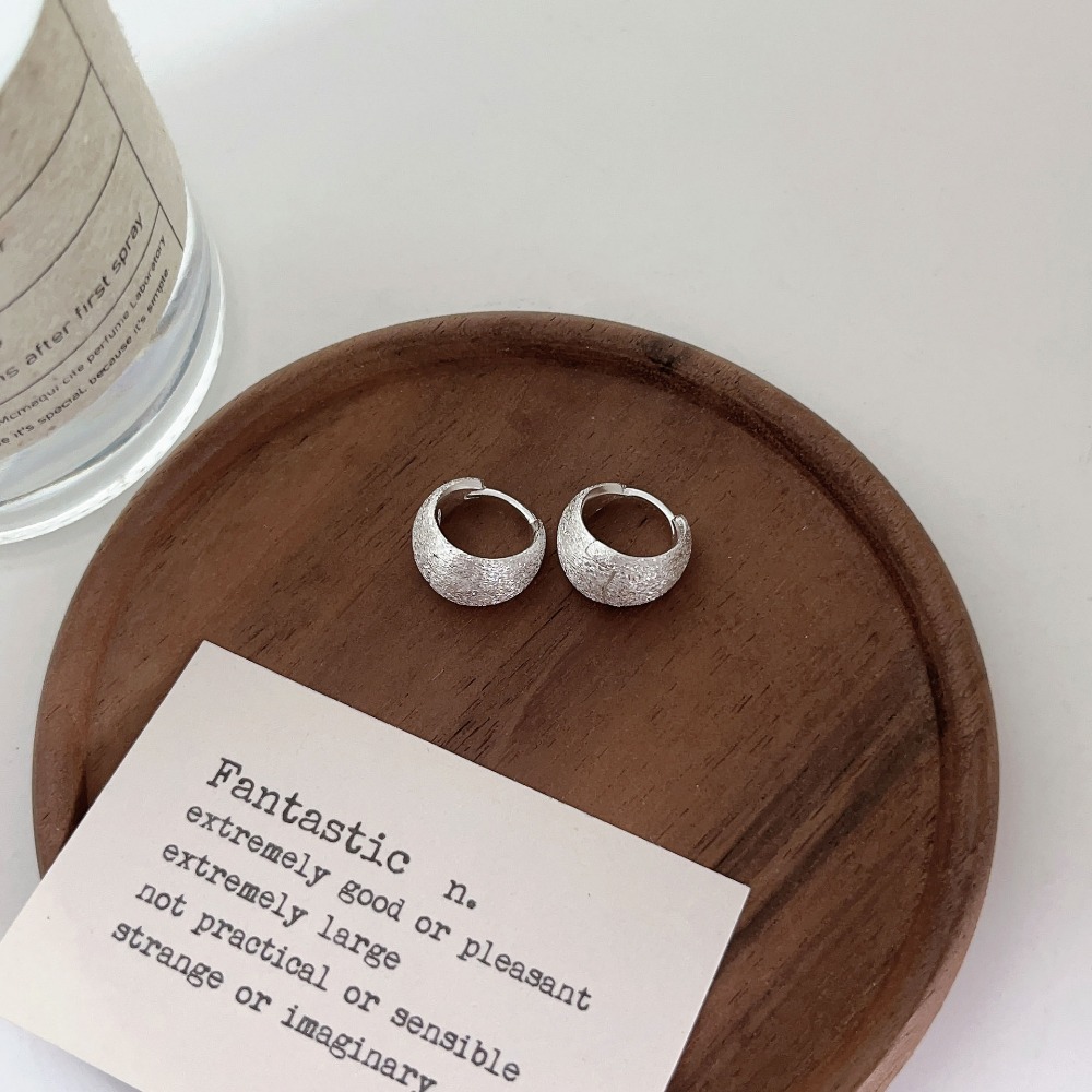 Matte Silver Hoop Earrings Minimalist Brushed Earrings