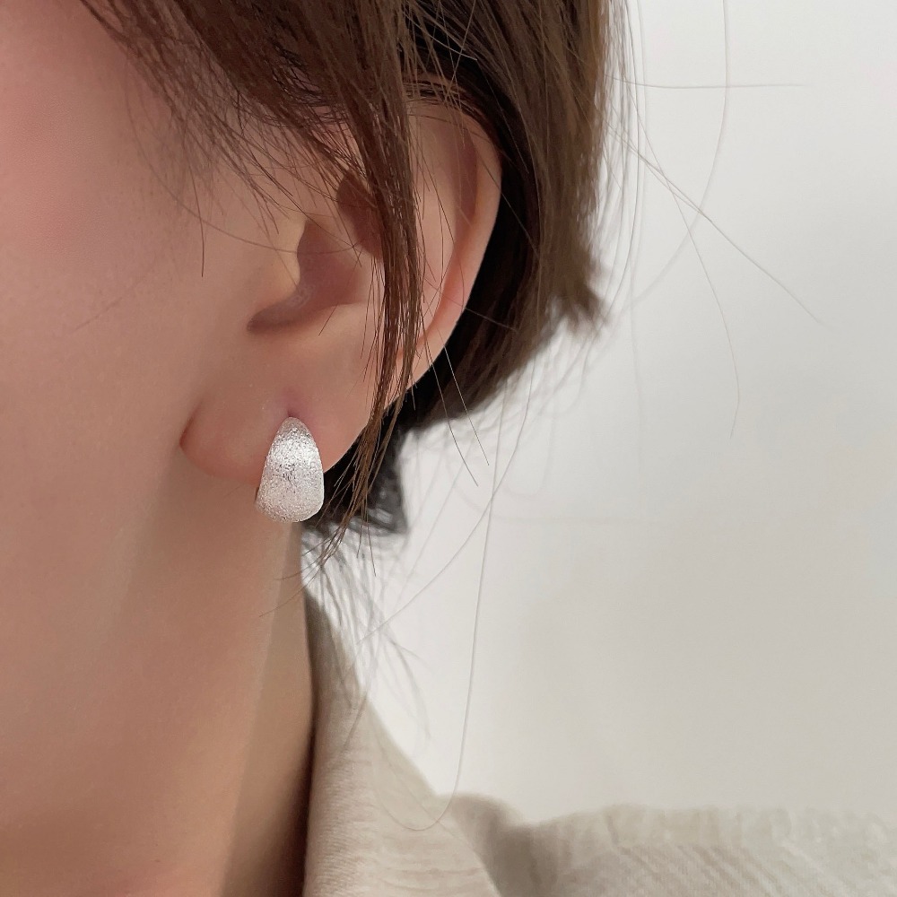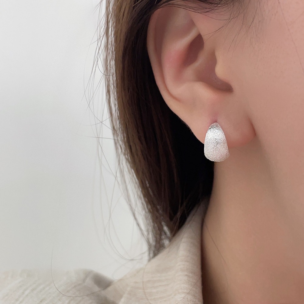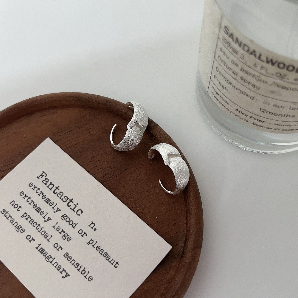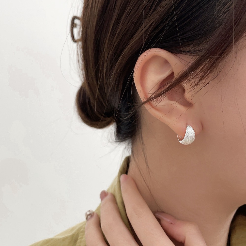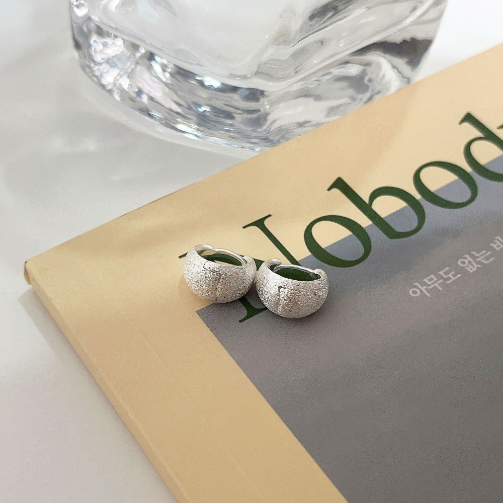 Matte Silver Hoop Earrings Minimalist Brushed Earrings